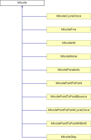 References MissileType::Class, Delay, DX, DY, MissileType::Height, MissileClassCycleOnce, MissileClassFire, MissileClassHit, MissileClassNone, MissileClassParabolic, MissileClassPointToPoint, MissileClassPointToPointBounce, MissileClassPointToPointCycleOnce, MissileClassPointToPointWithHit, MissileClassStay, MissileType::Sleep, SourceX, SourceY, MissileType::StartDelay, Type, Wait, MissileType::Width, X, and Y.